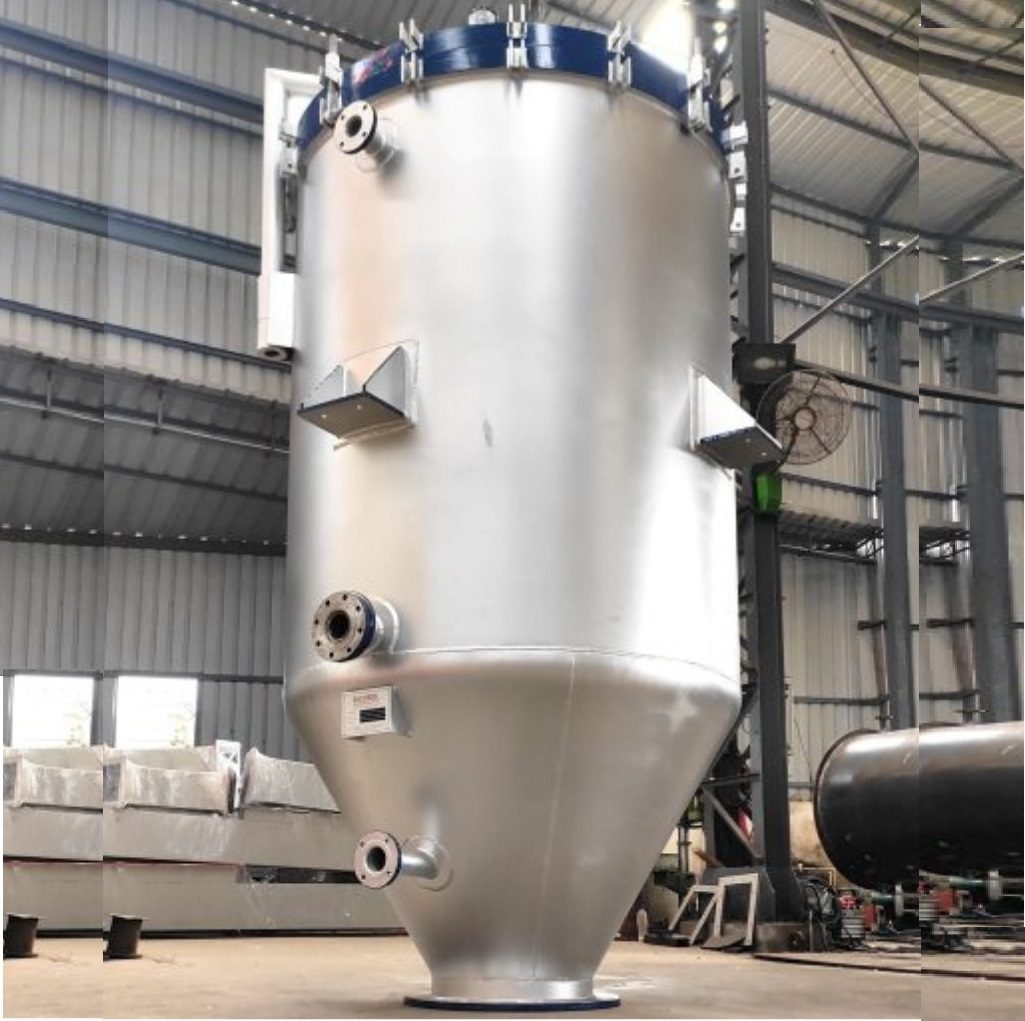 Equipment is designed vertically with conical bottom & dish end top. Filter elements are easilymounted vertically from top, which is tighten with “l” bolt system, to ensure quick loosing/tightening. Electro-pneumatic operated butterfly valve is installed at bottom end for quick removal of filtered material.