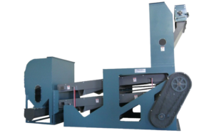 Air separator is equipped with vacuum wheel with revolving perforated sawn & connected to the suction fan.